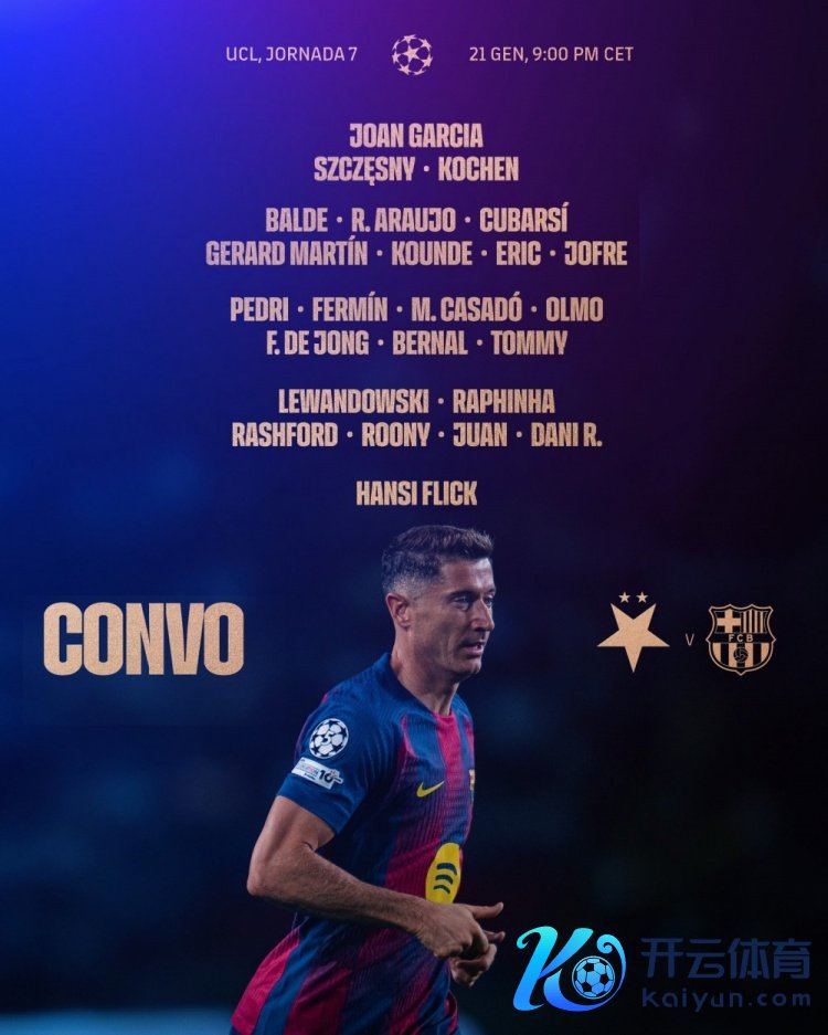 1月20日讯 北京技术1月22日凌晨,巴萨将在欧冠联赛阶段第7轮比赛中客场对阵布拉格斯拉维亚,巴萨公布了此役的球员名单,行将租出加盟赫罗纳的特尔施特根缺席,坎塞洛、费兰(肌肉不适)、亚马尔(停赛)也不在名单之中,拉菲尼亚追思。