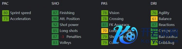 11月9日讯 EAFC25日前更新了球员数据,C罗的点球属性被下调了3点,当今为87。