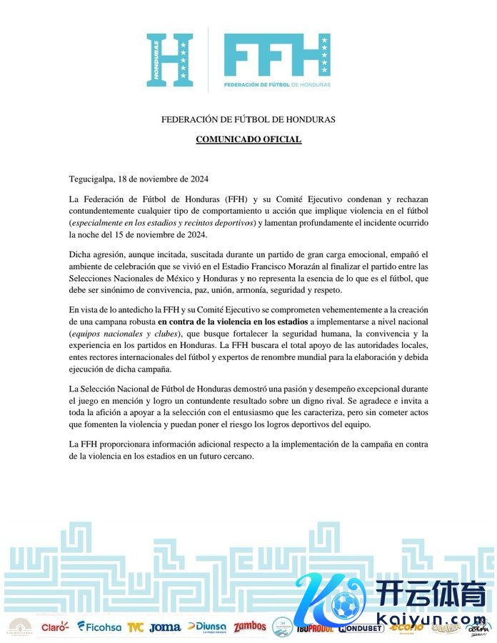 洪王人拉斯足球勾通会(FFH)额外推论委员会锋利非难并将强反对任何触及足球暴力(尤其是在畅通场馆内)的手脚或举动,并对2024年11月15日晚发生的事件深表缺憾。
