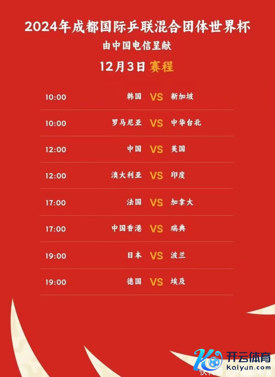 12月3日12:00,国乒VS好意思国队 ,CCTV5直播,咪咕付费直播。小组轮回赛,国乒不会碰到什么穷困的,磨合谐和,找找景况!