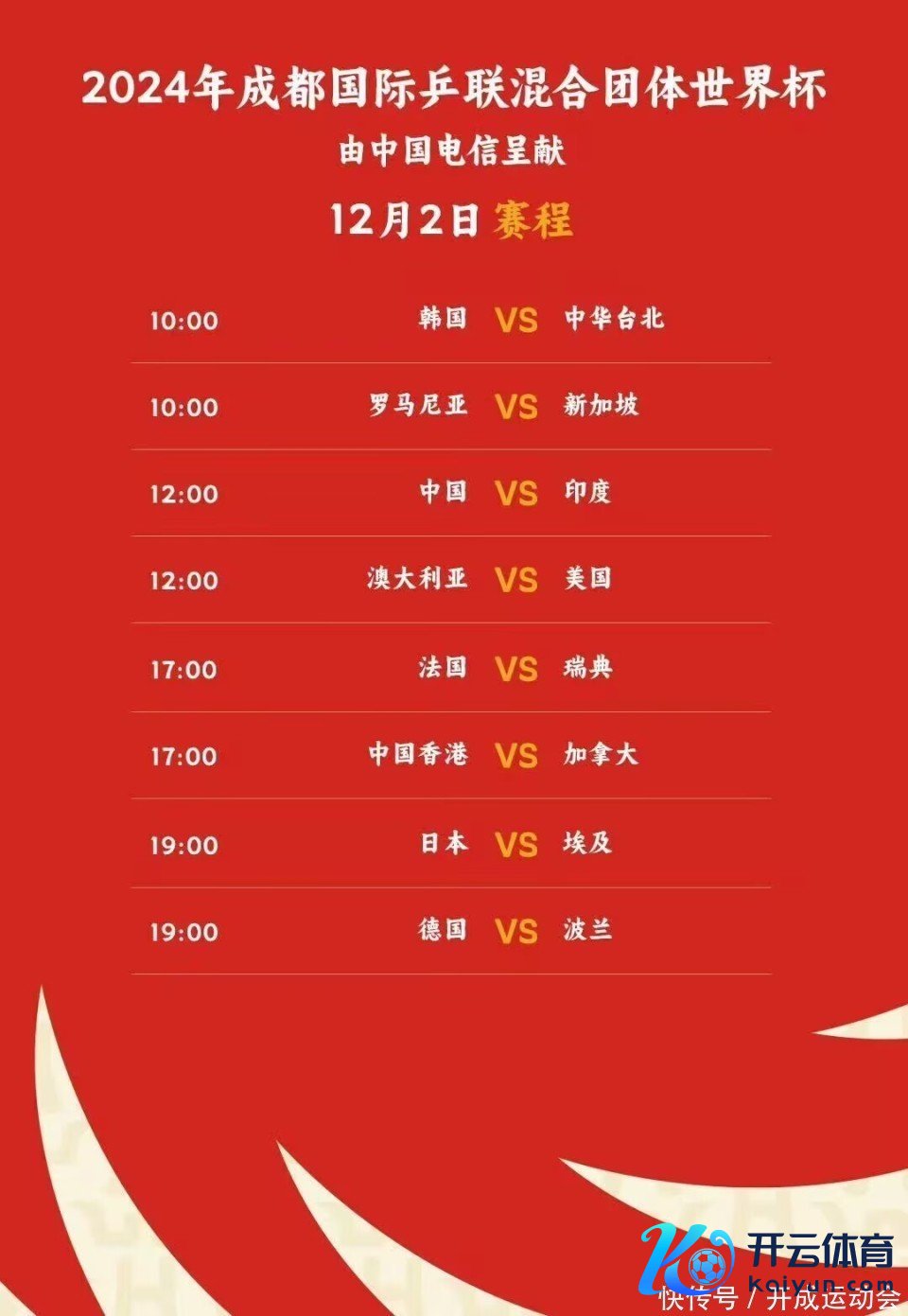 央视罗致性直播,咪咕体育付费直播,国乒12月2-3日赛程如下: