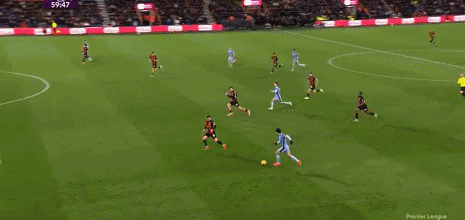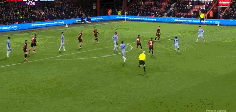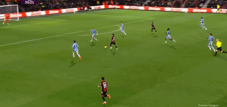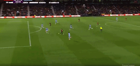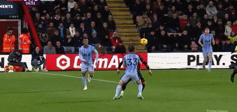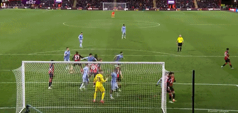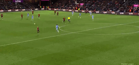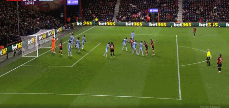 第52分钟,麦迪逊角球获胜射门,皮球被伯恩茅斯门将击出