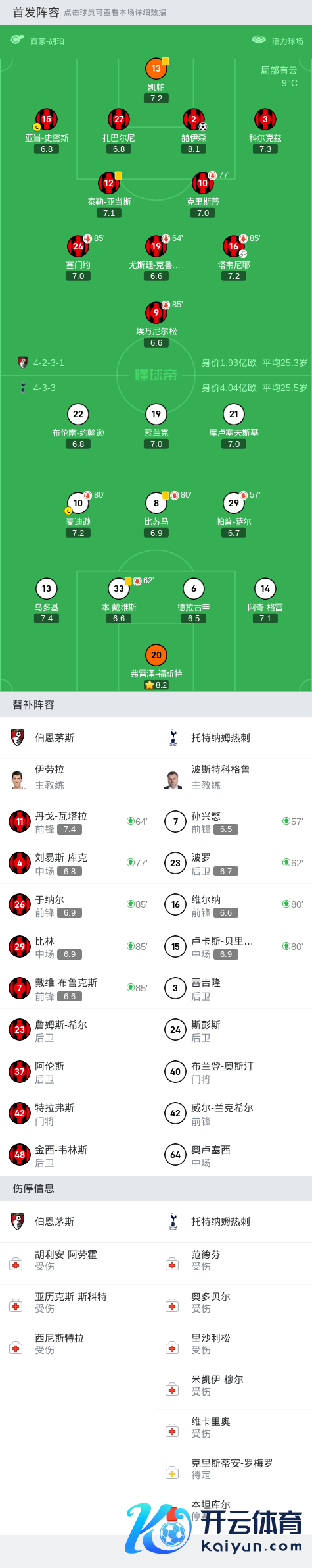 第58分钟,热刺进行东谈主员调理,孙兴慜替补登场并戴上队长袖标