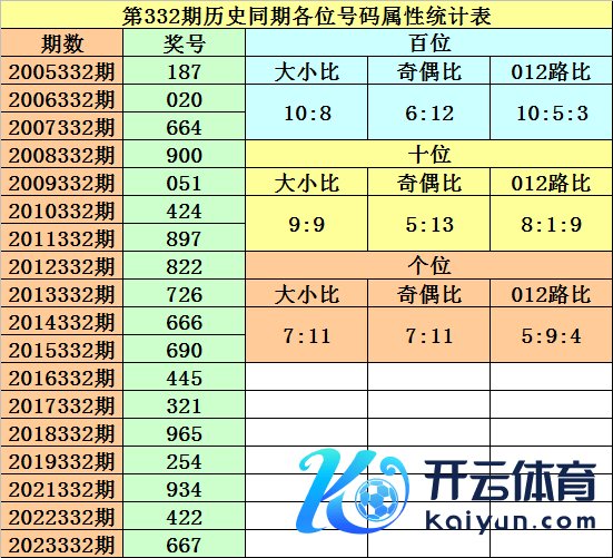 在历史同期第332期奖号中,个位号码奇偶比为7:11,012路比为5:9:4,大小比为7:11,号码波动8个点位,开出奖号为:7-0-4-0-1-4-7-2-6-6-0-5-1-5-4-4-2-7,本期个位留神0路号码开出,参考胆码3。