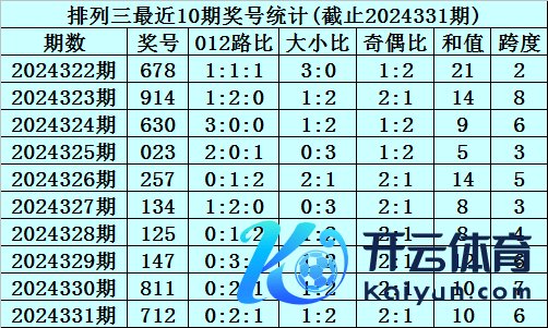 上期记忆:陈列三2024331期奖号为712,奇偶比为2:1,大小比为1:2,跨度为10。