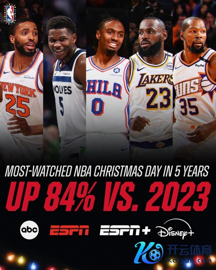 此外,本届圣诞大战成为5年来NBA收视率最高的圣诞大战世界杯体育信息,ABC、ESPN, ESPN+ & Disney+等平台的收视率比拟客岁增长84%,每场比赛的平均不雅看东说念主数达到525万。