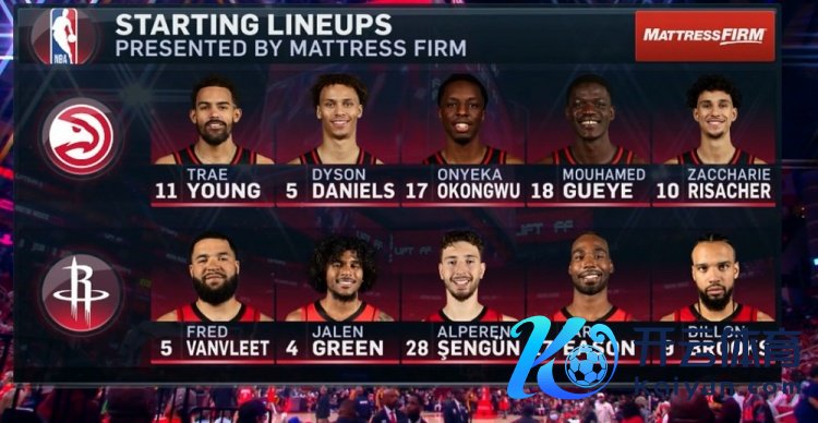 老鹰首发:特雷-杨、丹尼尔斯、奥孔武、默罕默德-盖耶、里萨谢世界杯体育信息。