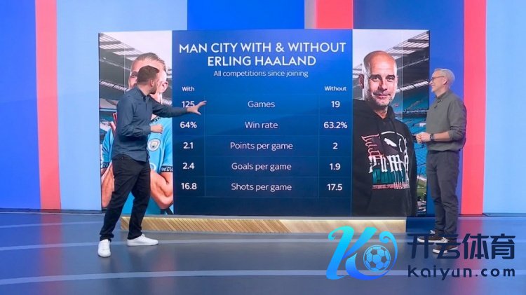 太空体育统计了哈兰德加盟曼城以来,他在场和缺席情况下球队的数据,哈兰德在场曼城胜率64%,场均打进2.4球,缺席曼城胜率63.2%,场均打进1.9球。