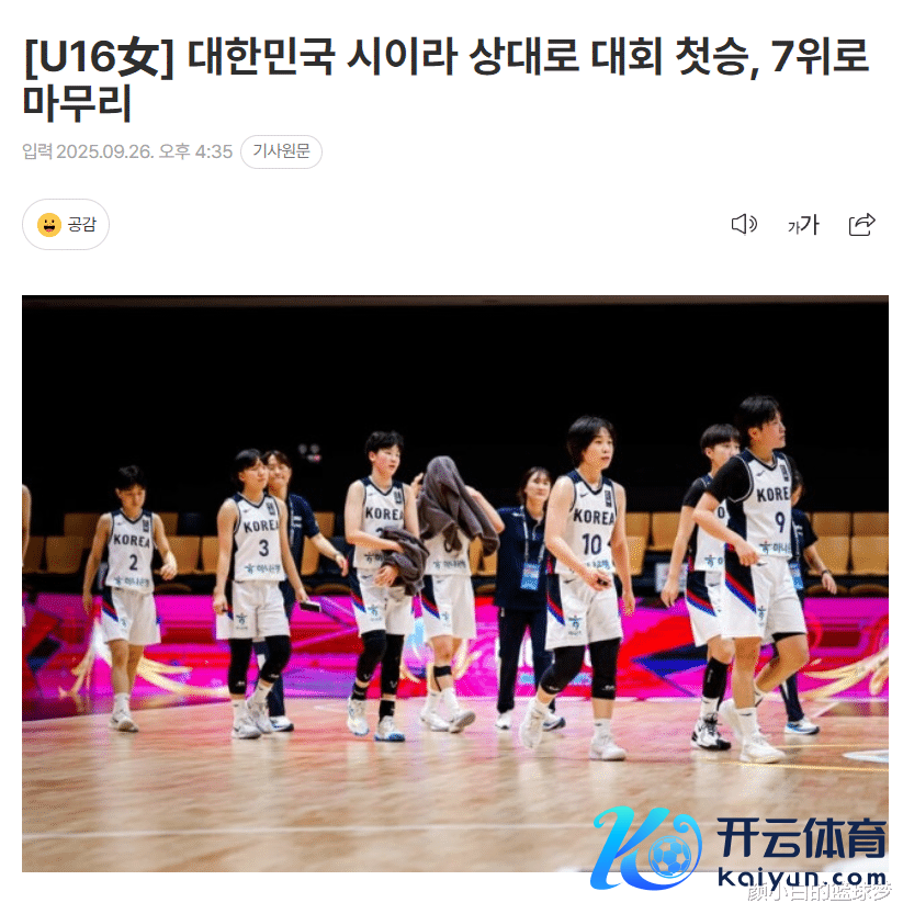 赛后韩国媒体《跳球》写说念:韩国U16女篮终于在亚洲杯上拿到首胜,她们最终以1胜3负大赛第七名截止了征途。
