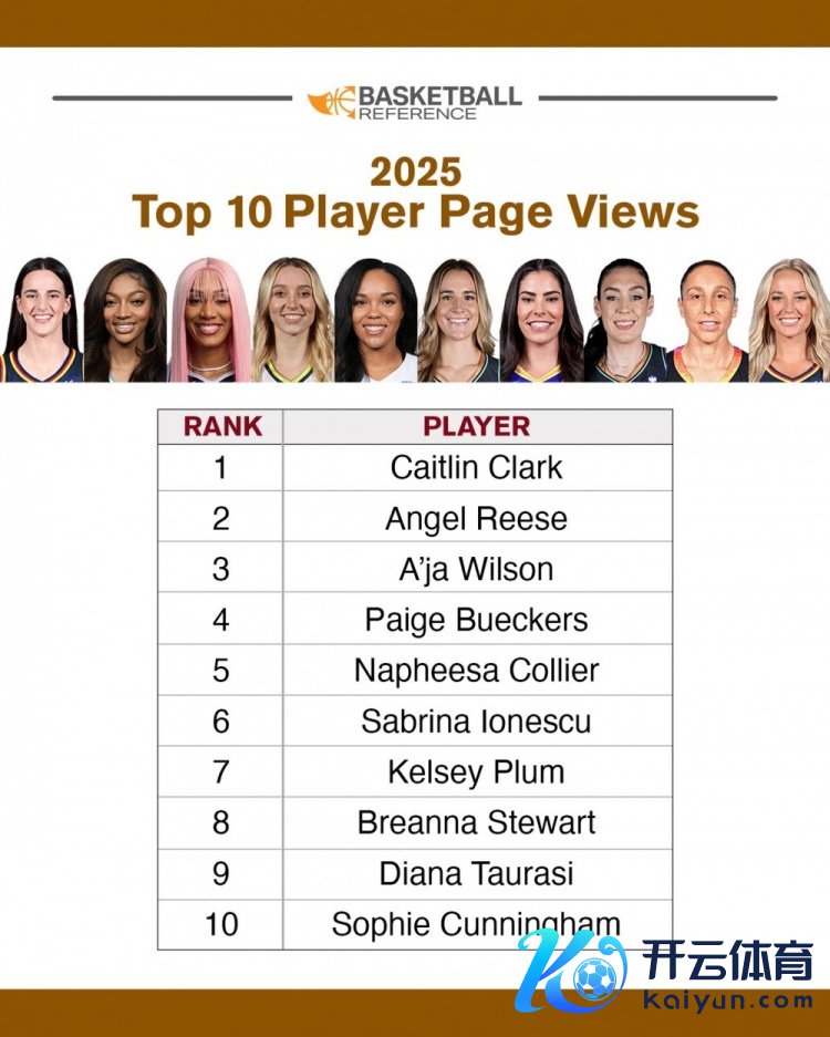 10月18日讯 数据网站Basketball Reference报谈,本赛季赛季进行技术站内浏览量最高的WNBA球员TOP10,其中克拉克第一、里斯第二、阿贾-威尔逊第三。