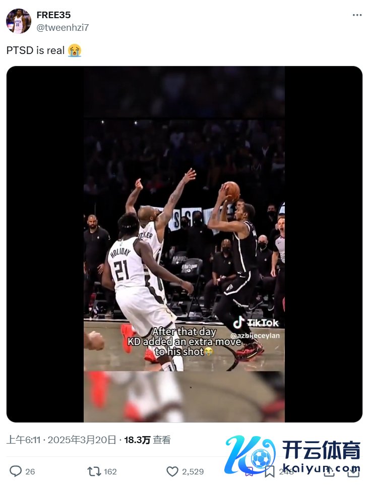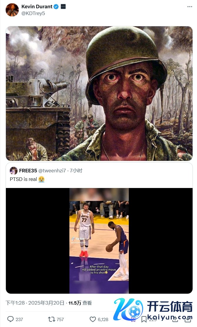杜兰特也转发了这个视频,配上了代表PTSD的经典方法包,暗意招供。