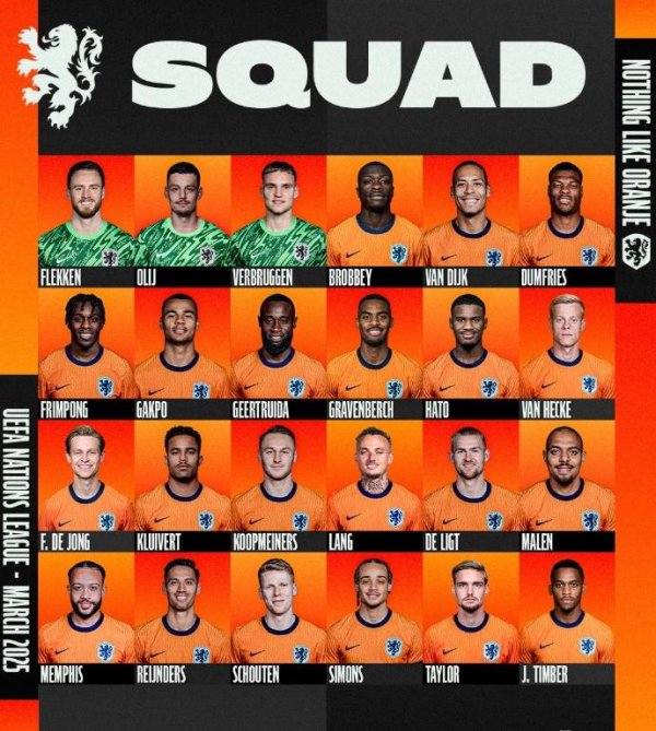 虎扑03月14日讯 荷兰刚刚公布了球队3月海外比赛日的慎重名单,他们将在3月的欧国联比赛中两回合迎战西班牙。其中曼联后卫德里赫特回顾,德容将在比赛中对阵巴萨的7名西班牙队友。 以下为荷兰欧国联大名单: 门将:弗莱肯(布伦特福德)、尼克-奥利(鹿特丹斯巴达)、维尔布鲁根(布莱顿) 后卫:范迪克(利物浦)、邓弗里斯(国米)、海特勒伊达(莱比锡)、哈托(阿贾克斯)、范赫克(布莱顿)、德里赫特(曼联)、廷伯(阿森纳) 中场:弗林蓬(勒沃库森)、赫拉芬贝赫(利物浦)、德容(巴萨)、克鲁......【更多...】