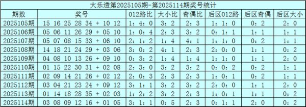 体彩大乐透第25114期奖号为:0308091216+0105,前区奖号012路比为3:1:1,奇偶比为2:3,大小比为0:5体育集锦,后区0路号码轮空。 赵研大乐透第2025115期奖号012路分析: 前区第一位分析:上期该位开出号码03,该位0号码遗漏1期再出,第一位最近30期012路比为6:9:15,最近20期012路比为5:5:10,最近10期012路比为3:3:4,本期第一位看好出现0路号,温雅号码06。 前区第二位分析:上期该位开出号码08,该位2号码承接出现2期......【更多...】