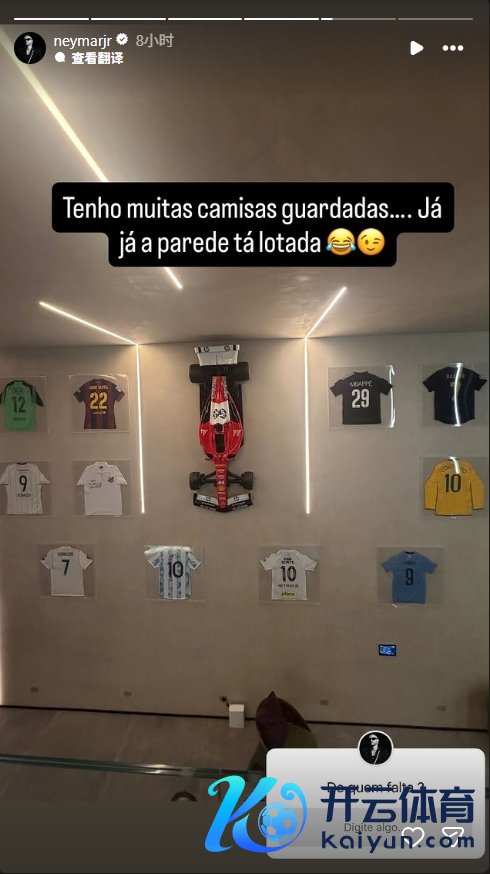 内马尔配文:“我囤了好多球衣……很快就能挂满一墙😂😉缺了谁的?”体育录像/图片