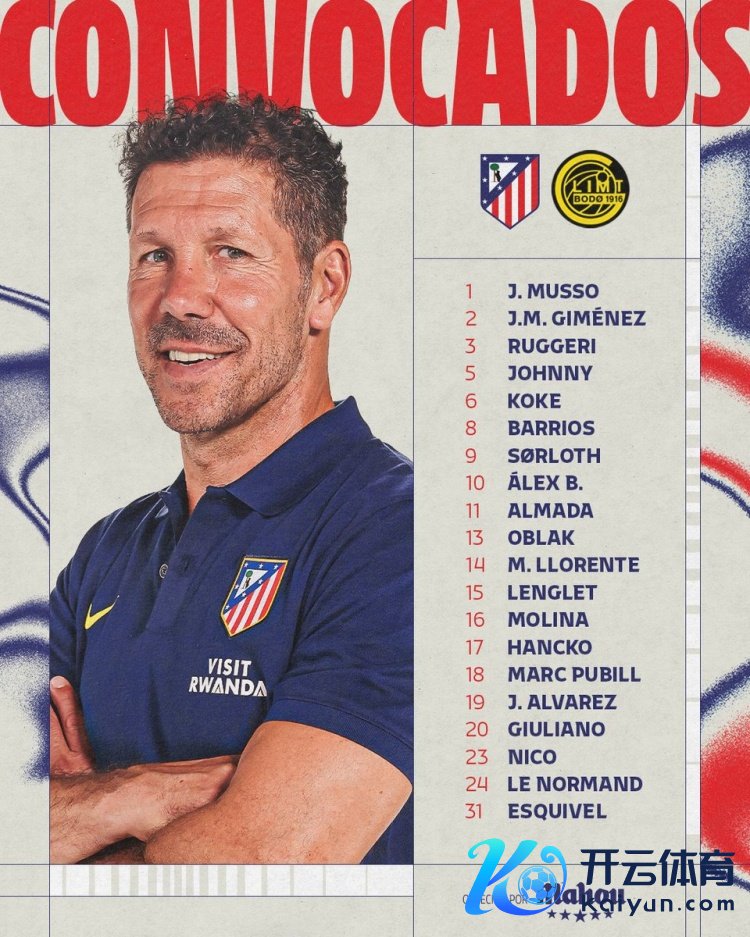 1月28日讯 北京期间来日凌晨4点,欧冠联赛阶段第8轮,马竞主场对阵博德忽闪,马竞公布了此役球队大名单。