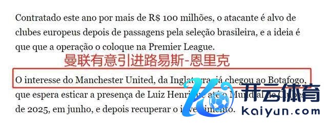 阿莫林担任曼联主帅,来岁夏天的红魔,必将进行重建。12月1日,巴西媒体“民众体育”显露,曼联盯上南好意思自如者杯冠军博塔弗戈先锋、23岁的巴西国脚路易斯-恩里克(Luiz Henrique)。