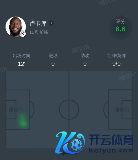 北京时辰12月6日vs那不勒斯体育录像/图片,卢卡库1次射门。