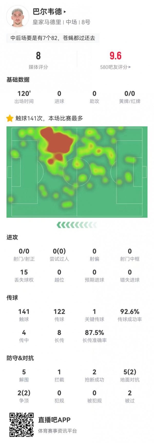 告捷率93%1要道传球4传中、0告捷8长传、7告捷1点球大战进球获评8.0分 体育录像/图片