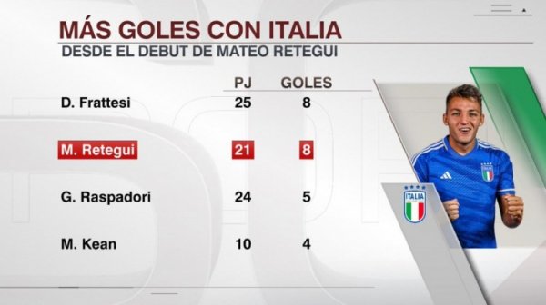 体育录像/图片 9月6日讯 在北京工夫今天凌晨进行世初赛中,雷特吉梅开二度,匡助意大利主场5-0打败爱沙尼亚。 据ESPN统计,雷特吉意大利队首秀以来打进8球,与弗拉西洋并排同时队内进球最多。 雷特吉首秀以来意大利队内进球榜: 弗拉西洋——25场8球 雷特吉——21场8球 拉斯帕多里——24场5球 基恩——10场4球体育录像/图片......【更多...】