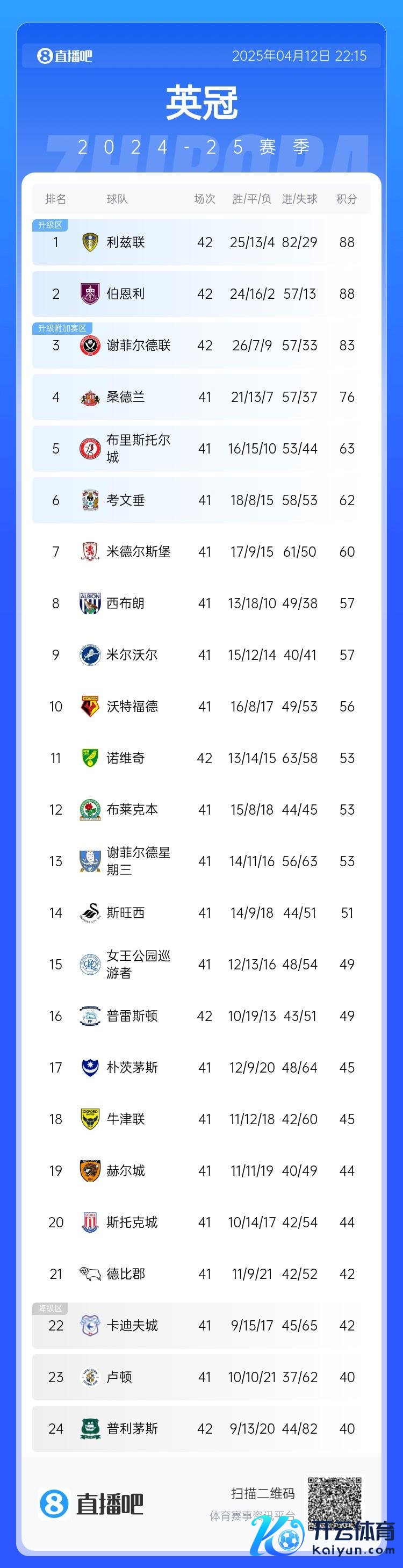 在英冠积分榜上,利兹联与伯恩利积88分赓续排行前两位,而谢菲联与径直升级区的积分差距也曾拉大到5分。