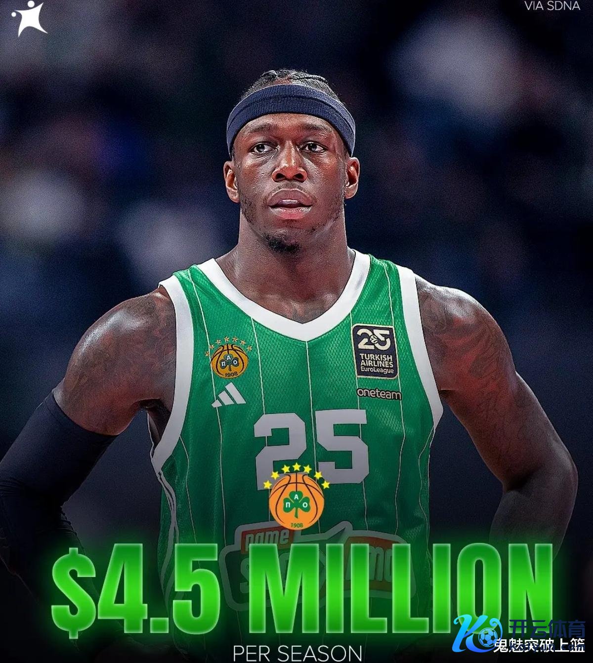 殊不知,2025年全齐称得上是肯德里克纳恩奇迹生活求名求利的一年。因为他不仅斩获了欧洲联赛MVP和联赛得分王外,他之前斩获了一份欧洲联赛第一高薪条约。在本月12日的期间,肯德里克纳恩与希腊联赛的帕纳辛奈科斯队厚爱签下一份为期三年价值1350万欧元(约为1480万好意思元)的续约条约。如斯一来,纳恩每年的薪水就达到了不能念念议的450万欧,他也因此成为欧洲联赛收入最高的球员!据悉,肯德里克纳恩的这份续约条约为完全保险,但不含NBA跳出条件。值得一提的是,3年1480万好意思元这亦然他奇迹生活所签下的最大条约。
