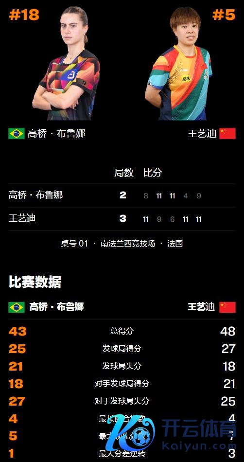 要津的第三局,高桥布鲁娜赓续了火热的紧迫手感,强势取得了4-0的开局,在王艺迪将比分追悼4-5时,高桥布鲁娜漂流叫暂停窜改,重返赛场之后打出一波流稳住了地方,最终以11-6领先参加我方的赛点局。