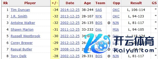 这亦然詹姆斯个东说念主圣诞大战生存第9败,而-33的正负值亦然圣诞大战历史第二低(邓肯-34是最低记录)。