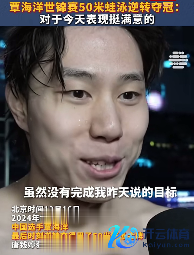 恭喜!25岁覃海洋短池世锦赛无缺收官,巴黎奥运之后威风未减,成绩50蛙和100蛙2枚金牌,蛙王实力无谓置疑!50米蛙以25.42成绩逆转夺冠,而在整个这个词比赛历程也短长常刺激,回转再回转狠狠收拢了全球的爆点。