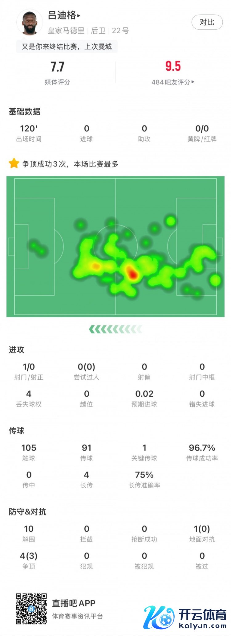 吕迪格本场数据:点球大战打进制胜点球10次突围1次封堵射门105次触球91次传球88次奏效传球奏遵循97%1次枢纽传球4次长传3次奏效5次扞拒取得3次4次丢失球权1次射门被封堵 体育赛事直播